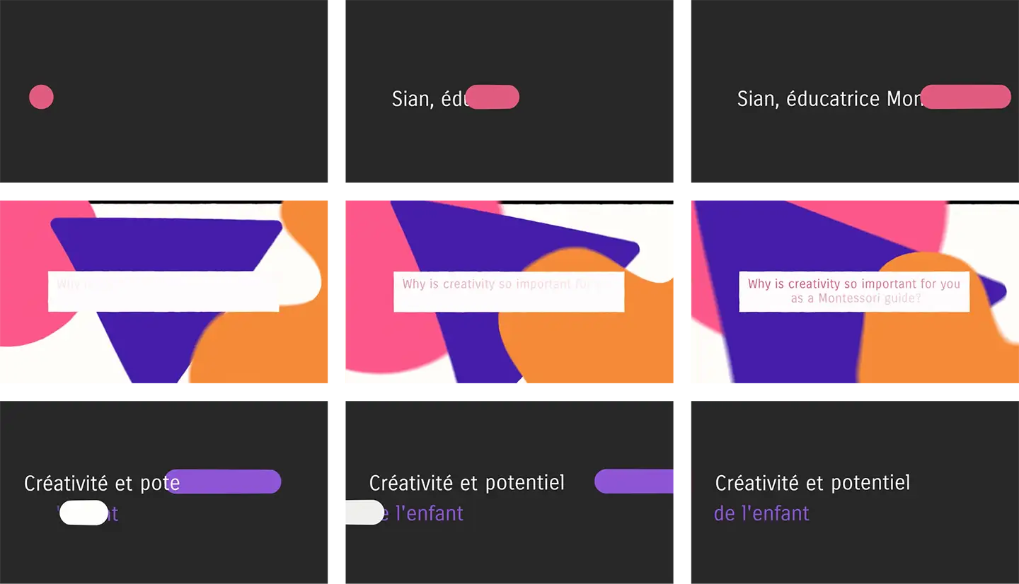 Animated graphics integrating the “Montessori” geometric forms and concepts. Colorful and vibrant. Playful and modern