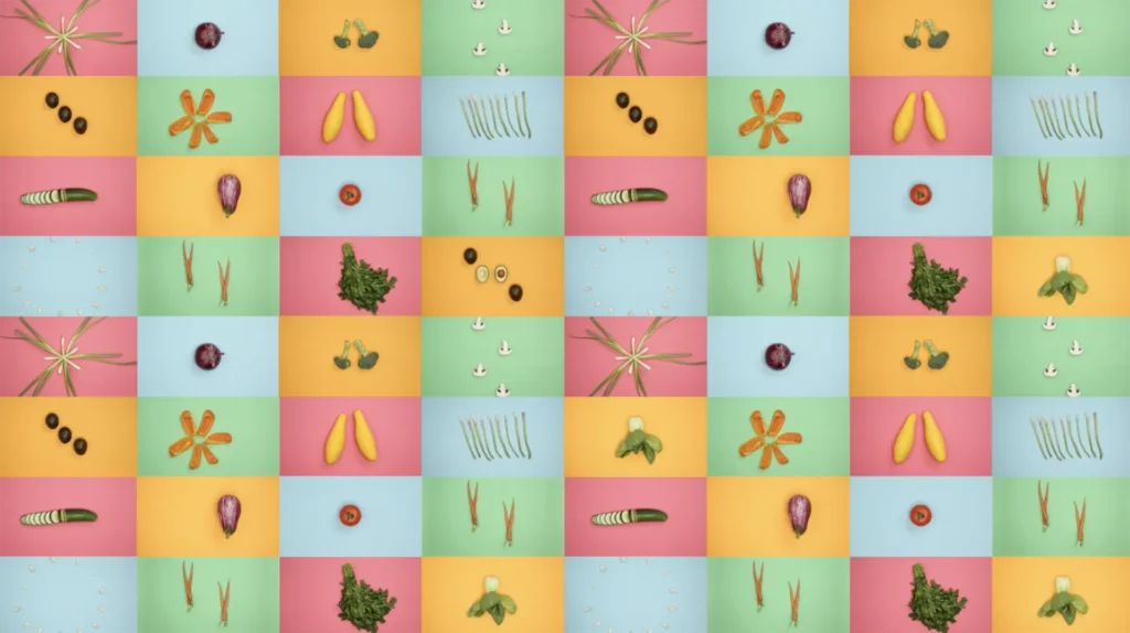 Stop Motion “Product Transformation” – Animating veggies on branded color background.